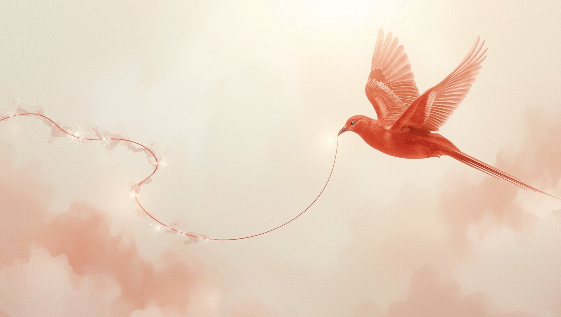 The mythic imagery of Hong Luan comes from the Luan Bird, a celestial creature in Eastern tradition believed to weave red threads of destiny between souls.