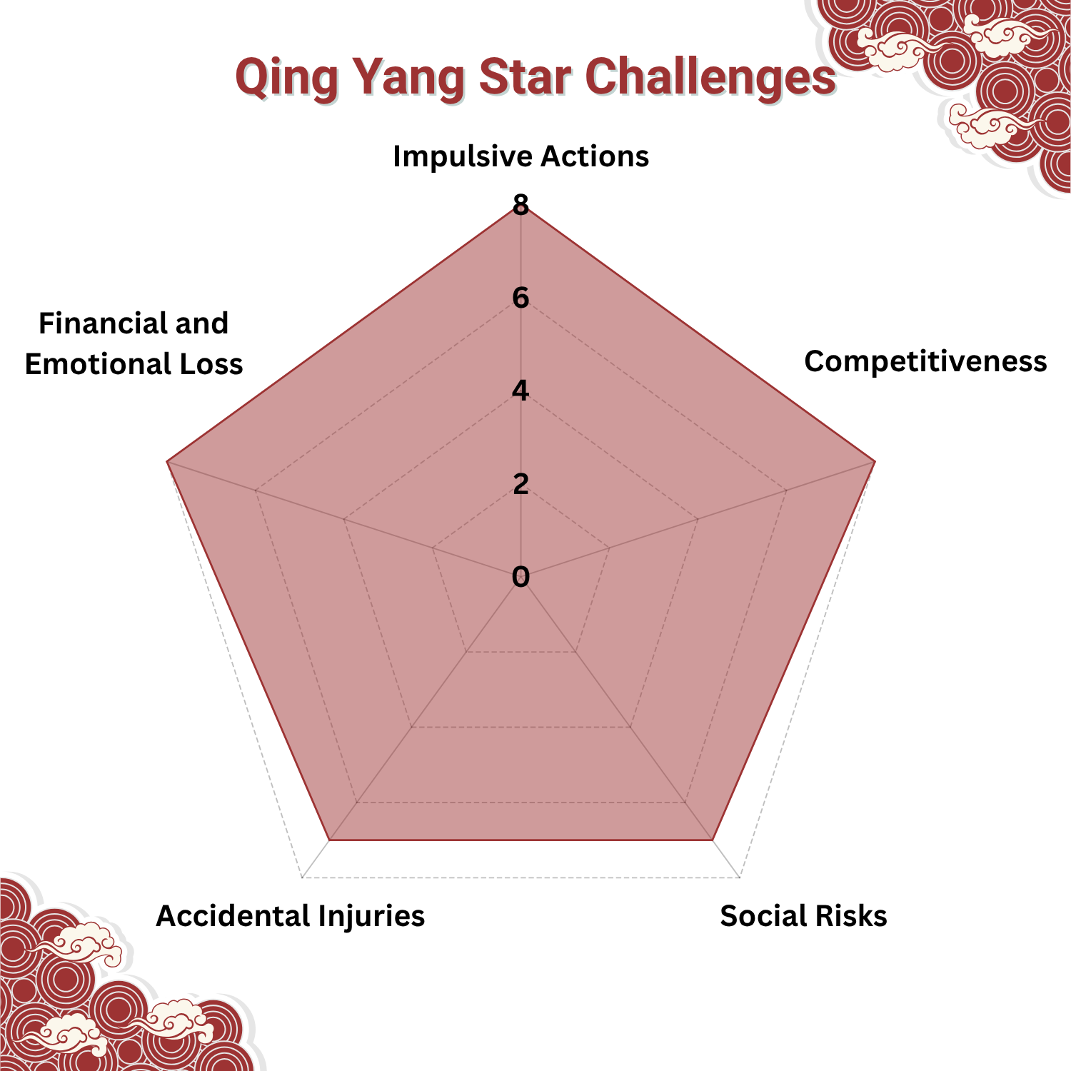 When the assertive energy of Qing Yang Star lacks control, it can turn into impulsiveness and competitiveness, leading to excessive risk-taking or conflicts with others.