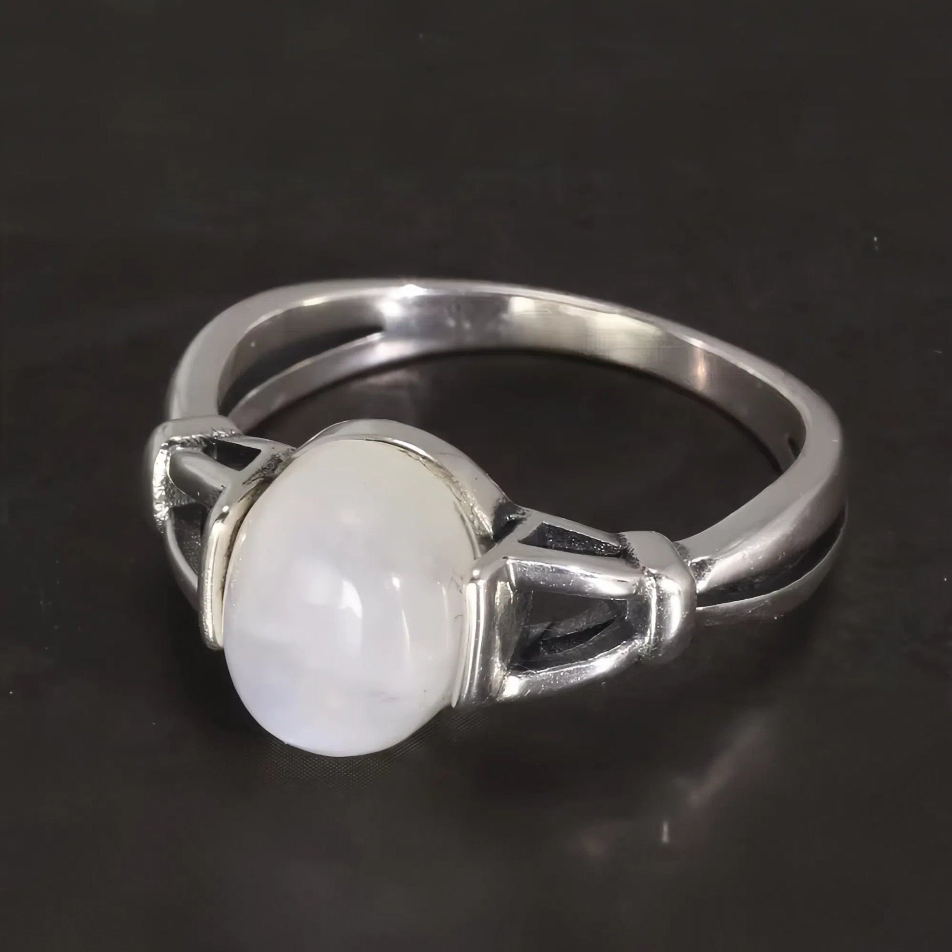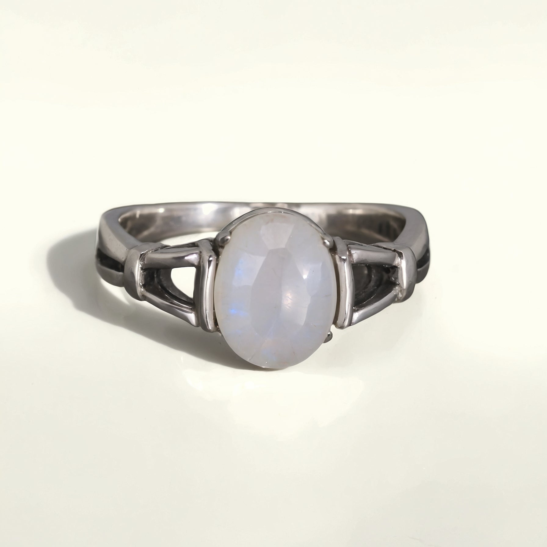 Lunar Whisper | 925 Sterling Silver Moonstone Ring for Love & Intuition